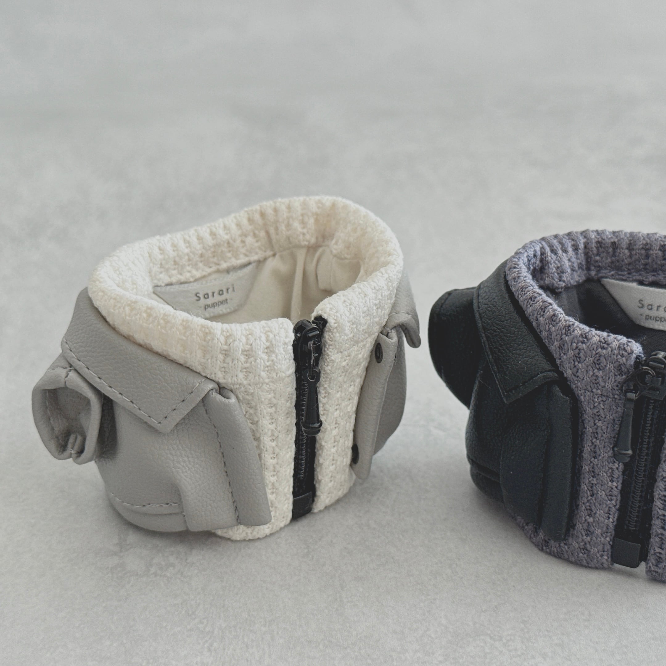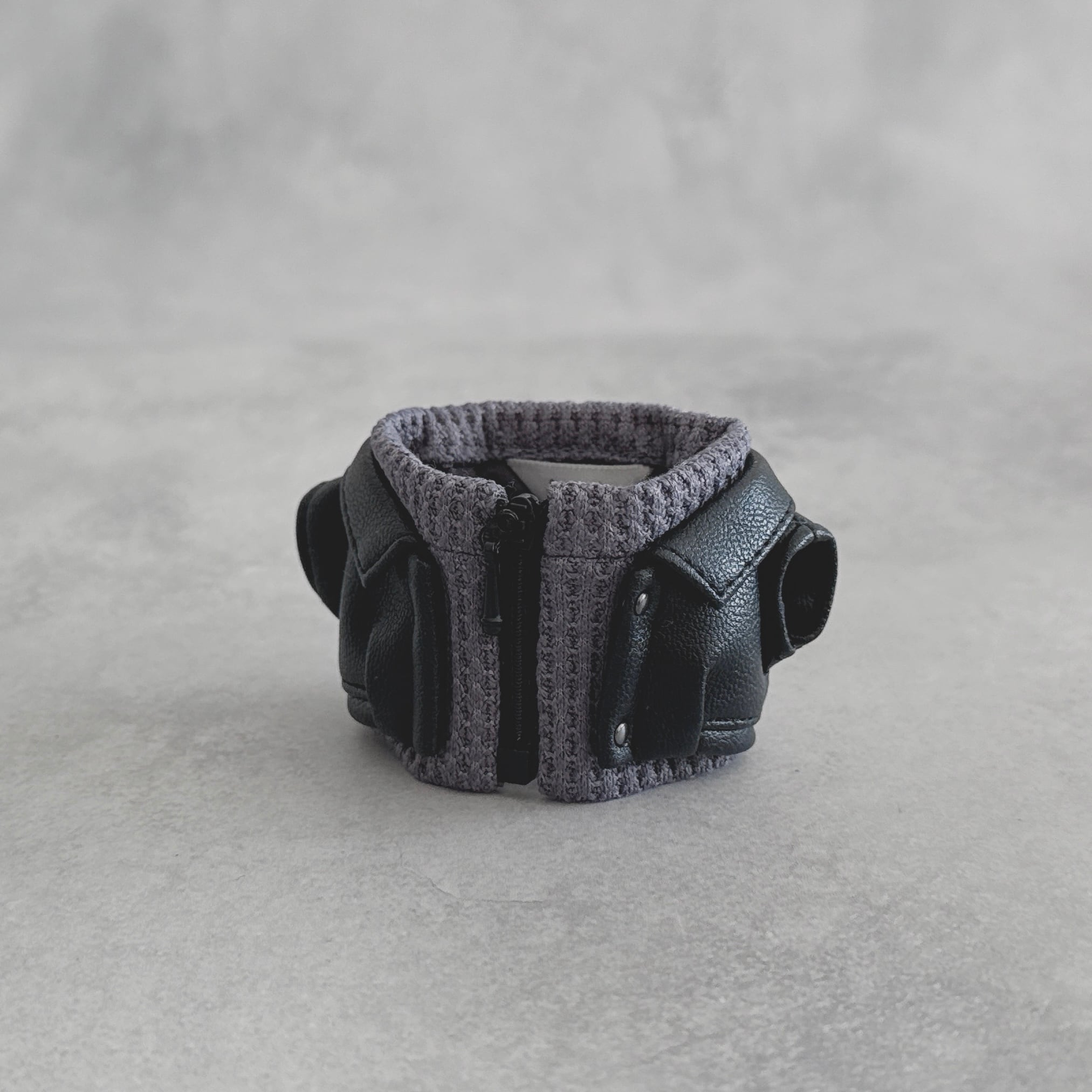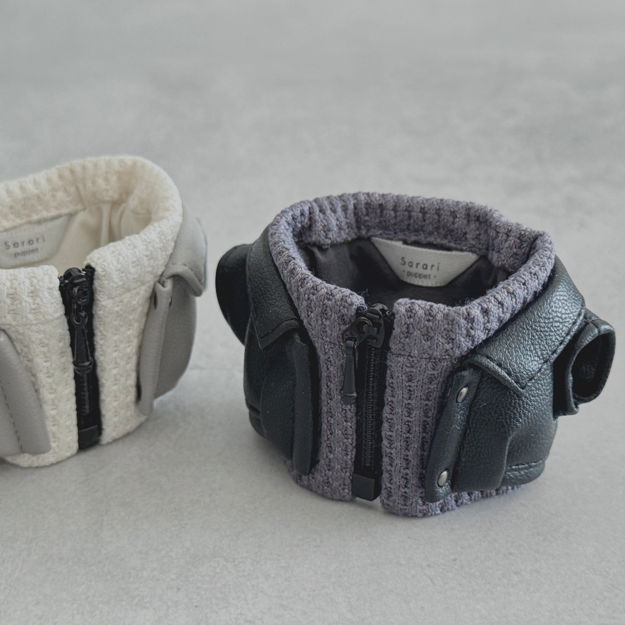 レザージャケットとハイネックのジップアップを一体化させた、一着で重ね着を楽しめるお洋服になっています。ジャケットのフロントにタックを入れて立体感を出し、ジップアップにはふっくらした生地を使用し、裏地を付けてボディにフィットしやすいよう仕上げました。