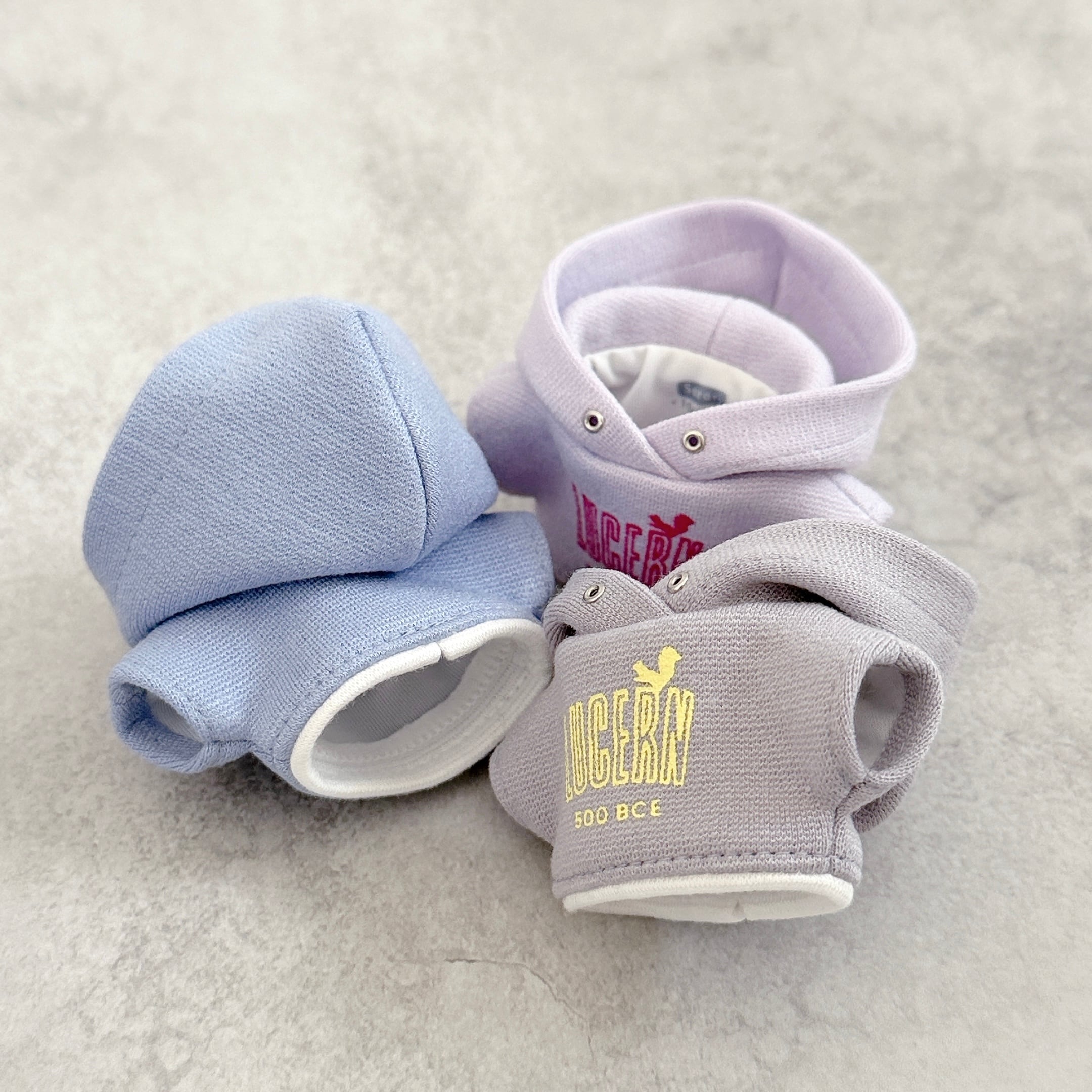 伸縮性があり、適度なハリのあるニット生地を使用しています。オールシーズン活躍してくれる、一枚で着映えする定番のフーディーです。フード口からボディを通しやすいよう、伸縮性のある裏地を付けています。