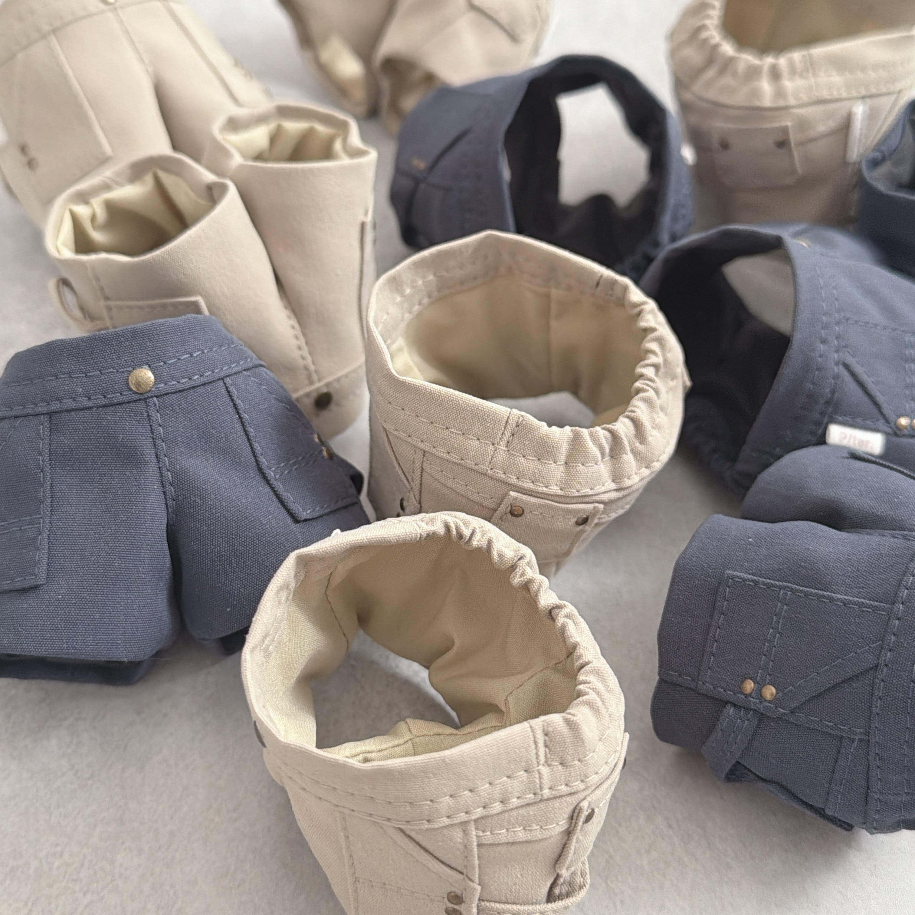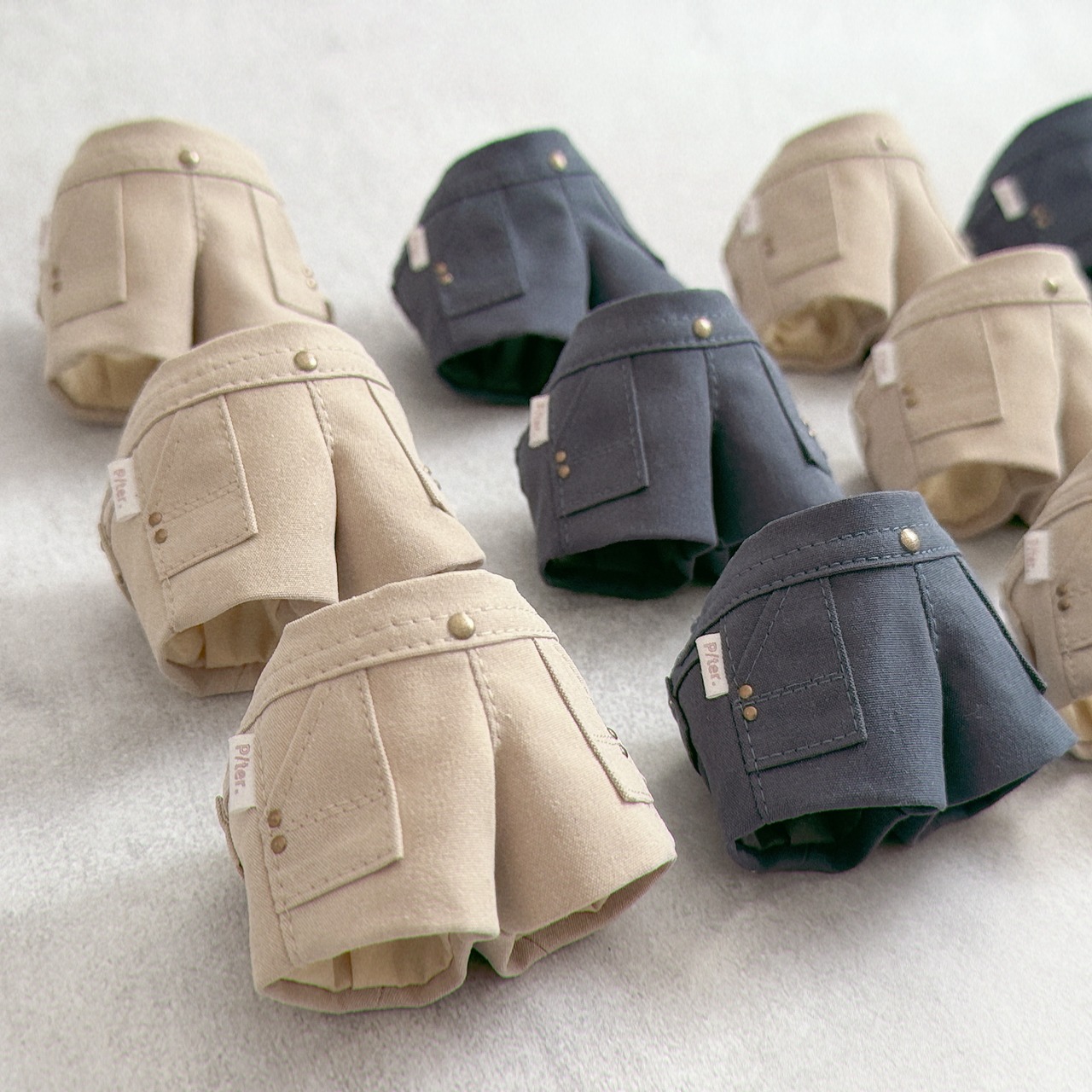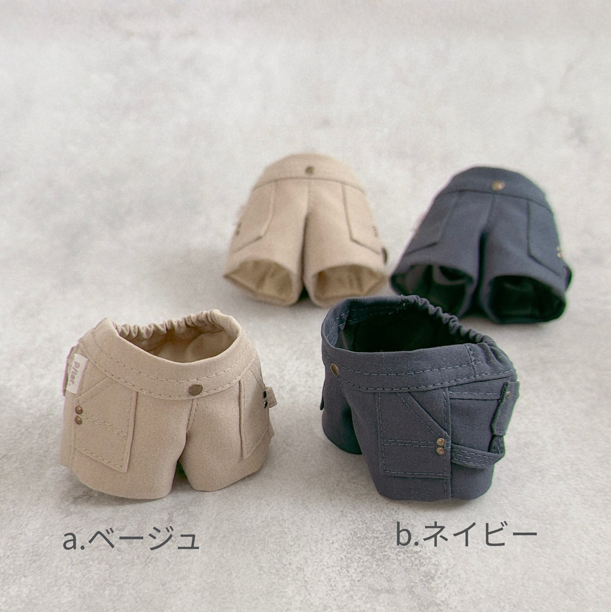 今までの16㎝サイズよりも、ヒップ、脚太めのぬいさんでも着用いただけるサイズ感にしてあります。サイズ表やXに投稿している着用画像も、あわせてご参考ください。