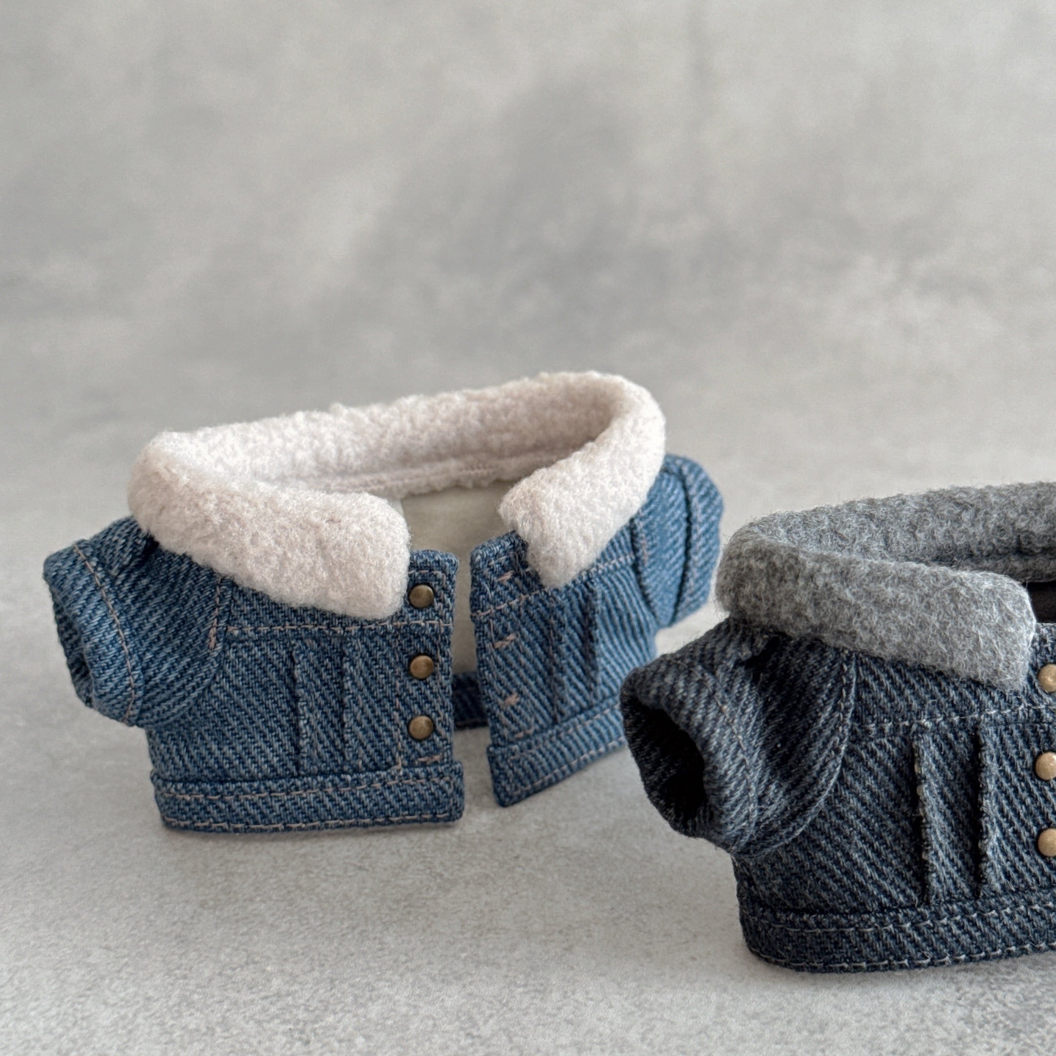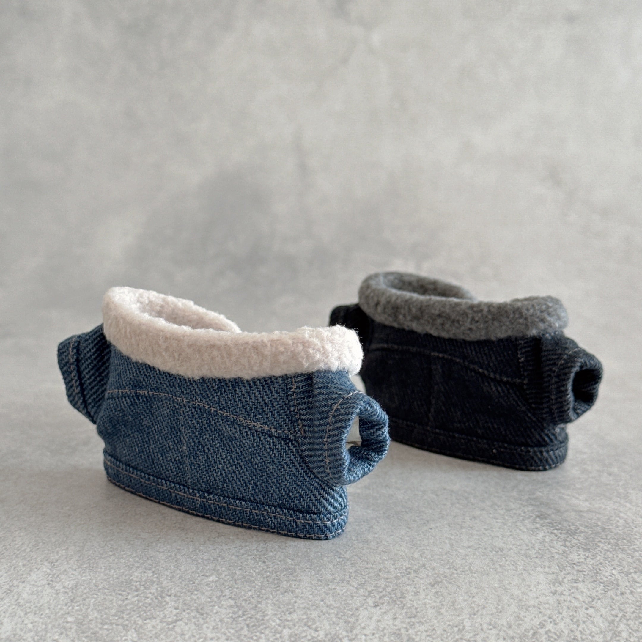 寒い季節に心地よいモコっとした襟のヴィンテージデニム風のアウター。しっかりとしたつくりになっており、後ろもリアルなデザインです。裏面はスッキリと仕上げ、襟には樹脂製のワイヤーを入れて筒状のボディにもフィットしやすいようにしました。